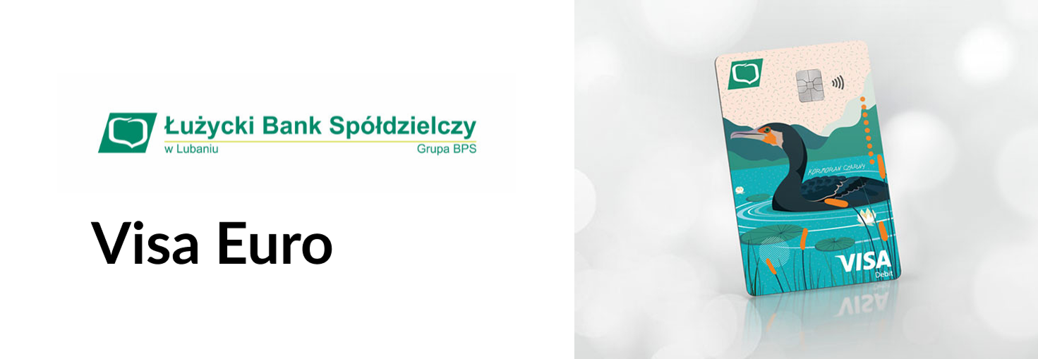 Karta debetowa Visa EURO jest nowoczesnym, wygodnym i bezpiecznym sposobem dokonywania codziennych płatności w walucie EURO, dostępna dla każdego posiadacza rachunku wautowego w Łużyckim Banku Spółdzielczym.